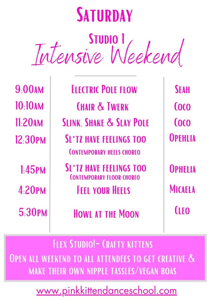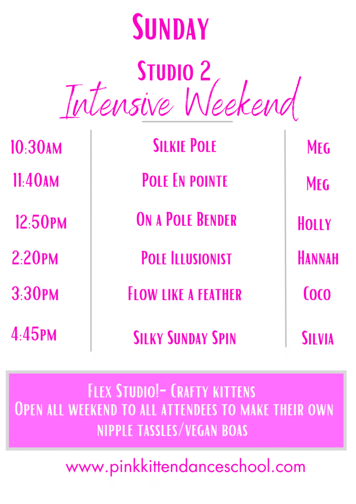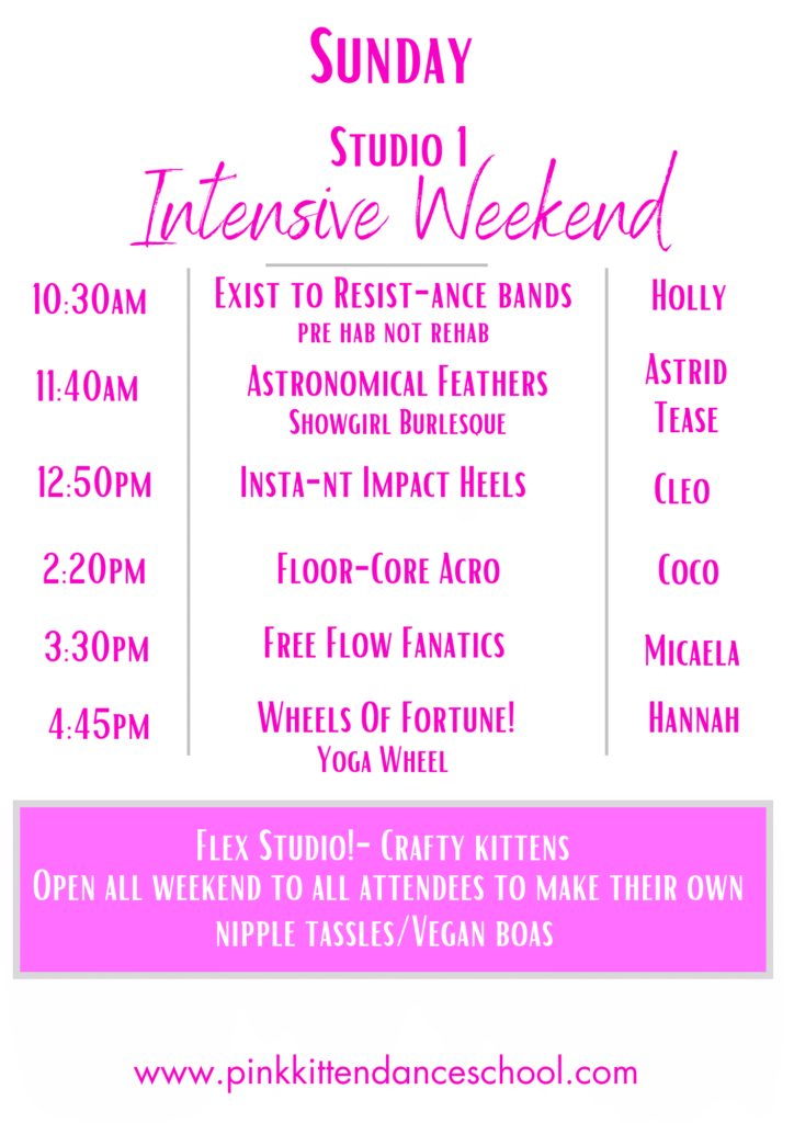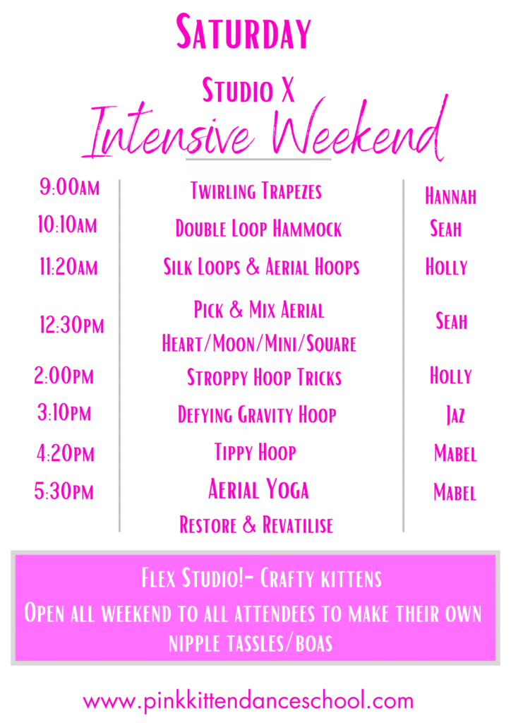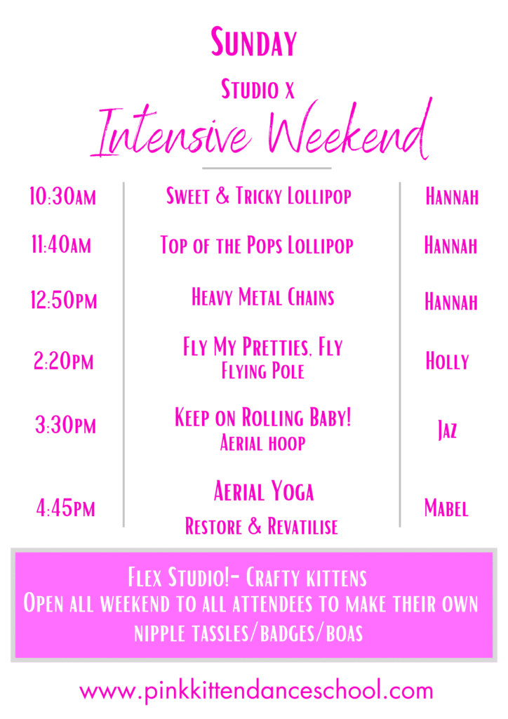 Pole, Circus, Aerial Hoop, Aerial Silks, Double Loop Hammock, Chains, Lollipop, Trapeze, Bungee Dance, Flying Pole, Heel Kips, Fishflops, Drops n Rolls, Silky Hoop, Burlesque, Choreo, Doubles, Chair, and more….